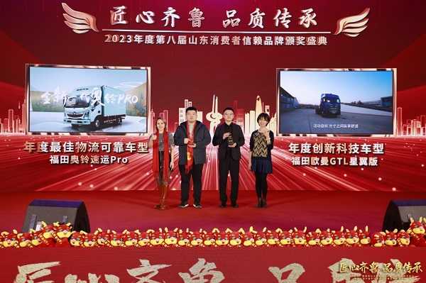 “匠心齐鲁•品质传承”,近日,由山东广播电视台文旅频道《汽车生活》栏目主办的第八届齐鲁车坛消费者信赖品牌颁奖盛典在济南隆重举行。福田奥铃旗下全新一代速运Pro轻卡被评为“年度最佳物流可靠车型”。