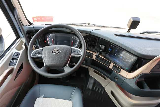乘龙H7 Pro 560 LNG牵引车搭载知名品牌14.8L大排量燃气发动机,拥有高达560马力的强劲动力,无论是平坦大道还是崎岖山路,都能轻松应对,充分满足省际运输的需求。这款发动机不仅动力强,而且气耗更低。在同类型15L燃气车中,其最低燃气消耗率仅181g/kwh,再加上风阻优化、低滚阻轮胎的运用,气耗相比同类产品更低2kg/百公里,让卡友跑车更省钱。